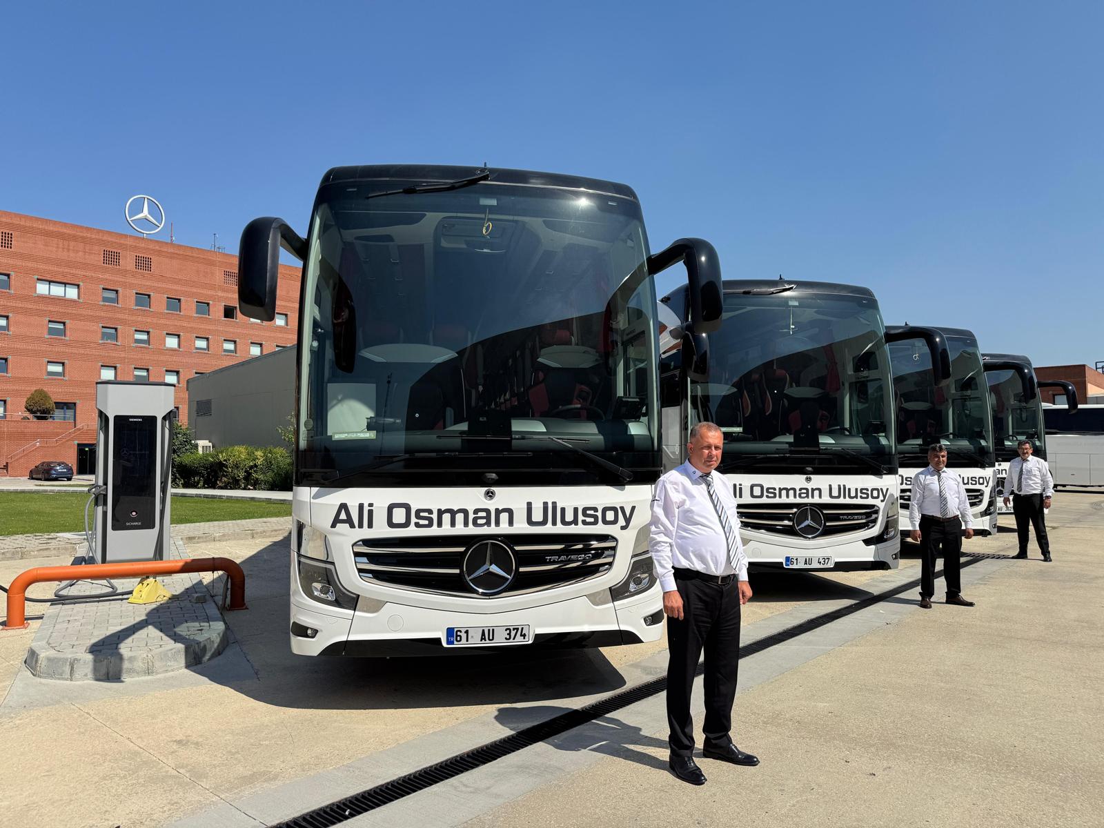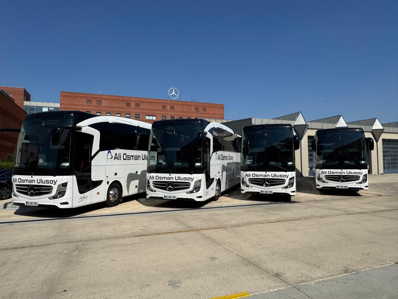 Şehirlerarası yolcu taşımacılığının en önde gelen firmaları arasında yer alan Ali Osman Ulusoy yeni otobüs yatırımlarıyla filosunu büyütmeye devam ediyor. Şirket, Hassoy Otomotiv tarafından yapılan teslimatla filosuna 4 yeni özmal Travego 16 2+1 otobüs daha kattı. 4 yeni Travego Mercedes-Benz Türk Pazarlama Merkezi’nde düzenlenen törenle teslim edildi. Törene Mercedes-Benz Türk Otobüs Satış ve Pazarlama Direktörü Osman Nuri Aksoy, Mercedes-Benz Türk Otobüs Filo Satış Koordinatörü Selen Bal, Hassoy Otobüs Satış Müdürü Cenk Soydan, Hassoy 2. El Satış Danışmanı Selçuk Köse, Ali Osman Ulusoy Operasyon Müdürü Metin Alper Yücel katıldı.