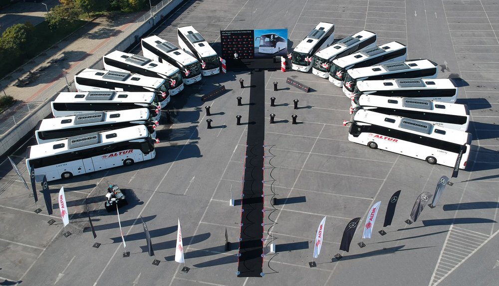4 Kasım Perşembe günü, Altur Turizm’in İstanbul Yenibosna’da yer alan genel müdürlük tesislerinde gerçekleşen teslimat töreninde Mercedes-Benz Türk Otobüs Pazarlama ve Satış Direktörü Osman Nuri Aksoy, Otobüs Filo Satış Grup Müdürü Burak Batumlu, Ali Osman Ulusoy Şirketler Grubu Yönetim Kurulu Başkanı Emriye Hülya Ulusoy, Hassoy Motorlu Vasıtalar Genel Müdürü Selim Saral ve Otobüs Satış Müdürü Cenk Soydan; araçları Altur Turizm Yönetim Kurulu Başkanı Abdurrahim Albayrak, Yönetim Kurulu Başkan Yardımcısı Hikmet Albayrak, Yönetim Kurulu Üyesi Yasin Albayrak, Altur Turizm Genel Müdürü Halil Kemal, Genel Müdür Yardımcıları Engin Koşan ve Süleyman Tuncer, Altur Turizm Garaj Müdürü Yusuf Yazıcı ve Altur Turizm Destek-Kademe Müdürü Tacettin Işık’a teslim etti.