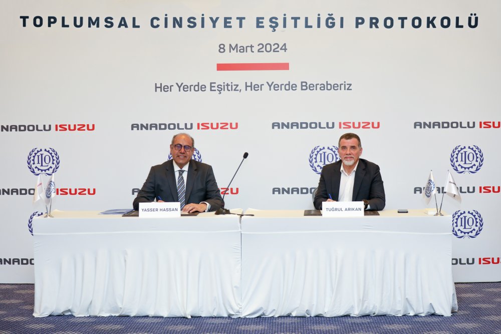 Anadolu Isuzu, Birleşmiş Milletler Uluslararası Çalışma Örgütü (ILO) ile “Toplumsal Cinsiyet Eşitliğinin Geliştirilmesi Modeli” üzerinde çalışmalar yapmak üzere protokol imzaladı. 8 Mart Dünya Kadınlar Günü’nde gerçekleşen imza törenine Anadolu Isuzu Genel Müdürü Tuğrul Arıkan ve ILO Türkiye Ofisi Direktörü Yasser Ahmed Hassan ile birlikte Anadolu Isuzu’da farklı görevler üstlenen kadın çalışanlar ve davetliler katıldı.