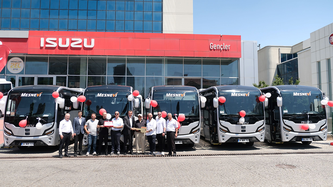 Türkiye’nin ticari araç markası Anadolu Isuzu, geniş ürün yelpazesi ve müşteri odaklı yaklaşımıyla Türkiye’nin dört bir yanındaki sektör ihtiyaçlarına özel çözümler sunmaya ve üstün performanslı araçlarını kesintisiz olarak teslim etmeye devam ediyor. Anadolu Isuzu, turizm taşımacılığı alanında Türkiye’nin önde gelen firmalarından biri olan Mesnevi Turizm’e 5 adet özel üretim Grand Toro teslim etti. Ankara’da düzenlenen teslimat törenine; Mesnevi Turizm’in Kurucusu Ünal Öztürk, Mesnevi Turizm Firma Sahibi Mustafa Öztürk, Mesnevi Turizm İstanbul Ofisi Müdürü Oğuzhan Öztürk, Ankara Ofisi Müdürü Fatih Öztürk ve Mesnevi Turizm sürücülerinin yanı sıra Anadolu Isuzu Kilit Müşteri Yöneticisi Ferhat Sancaklı, Anadolu Isuzu Bölge Satış Sorumlusu Ozan Şimşek, Ankara Isuzu Bayii Gençler Motorlu Araçlar Bayi Sahibi Fatih Tanrıkulu ve Gençler Motorlu Araçlar Otobüs Satış Müdürü Cihan Kılıç katıldı.