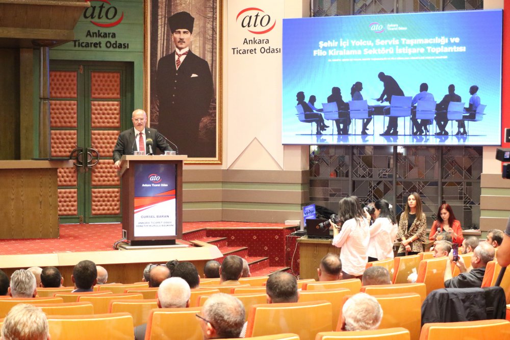 ATO Meclis Salonu’nda 28 Eylül Çarşamba günü gerçekleşen toplantının açılışında konuşan Ankara Ticaret Odası Başkanı Gürsel Baran, servis taşımacılığı yapan firmaların son dönemde yaşadığı sorunların çözümü konusunda sektör temsilcilerinin görüş ve önerilerinin kıymetli olduğunu söyledi. Servis taşımacılığı hizmetinin çok hassas ve önemli bir meslek olduğunu kaydeden Baran, “Sizler can taşıyorsunuz, evlatlarımızı, çocuklarımızı, kendimizi size emanet ediyoruz. Düzenli ve güvenli taşımacılık yapabilmek adına “C” plakanın artırılması gerektiğini dile getirdiniz, bu talebinizin bir an önce çözüme kavuşmasını isteriz” dedi.
