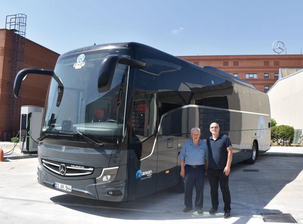 Arıkan Turizm, yeni yatırımlarla filosunu büyütmeye devam ediyor. Şirket, 20 Ağustos’ta Mercedes-Benz Türk Pazarlama Merkezi’nde düzenlenen teslimat töreniyle filosuna Mercedes-Benz Tourismo otobüs kattı. Teslimat törenine Arıkan Turizm’in kurucusu sektörün duayen isimlerinden Cemal Arıkan, Başkaptan Ahmet Kahyaoğlu, Kaptan Hasan Kiracı, Mercedes-Benz Türk bayii Hassoy Otomotiv Otobüs Satış Müdürü Cenk Soydan katıldı.