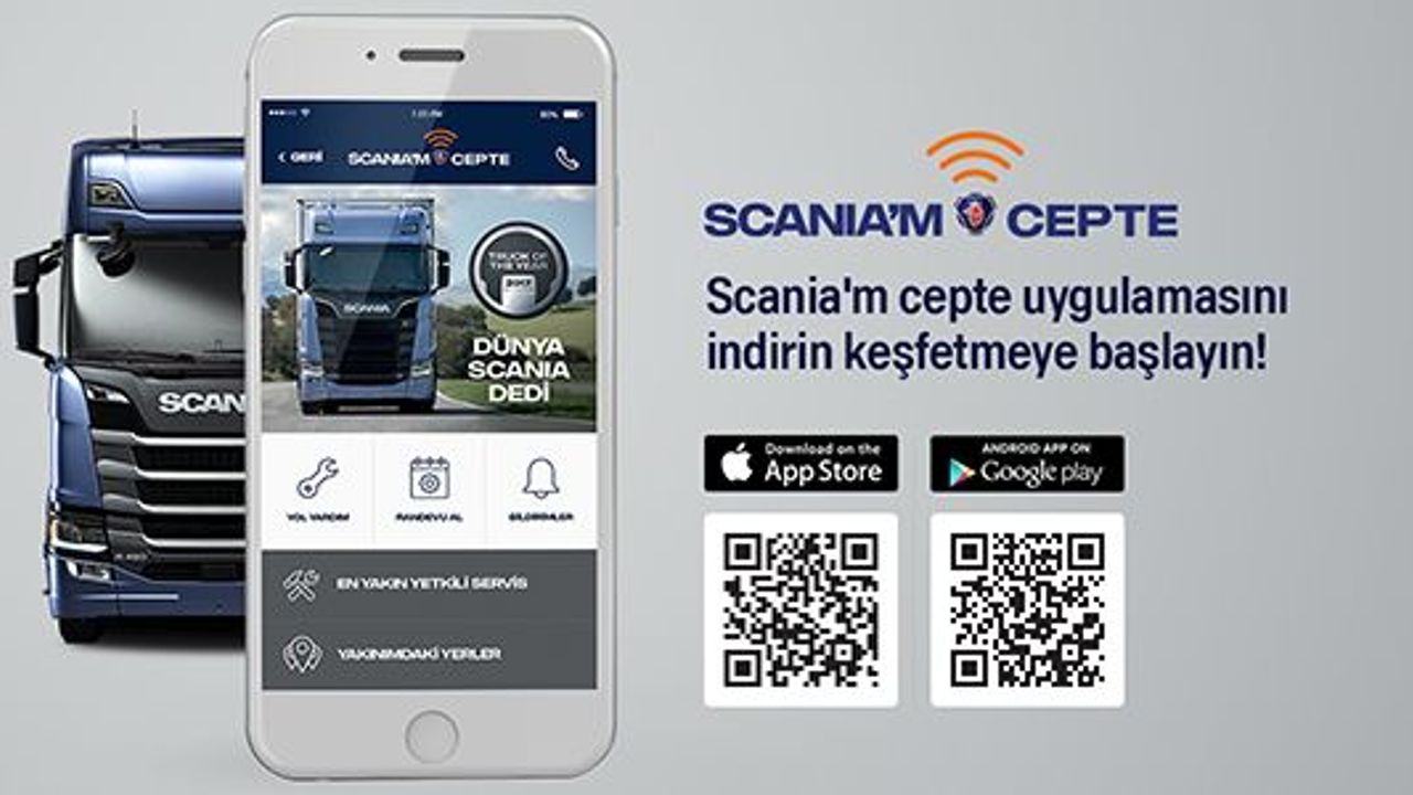 Scania,tüm teknolojik yenilikleri yakından takip ederek müşterilerine zaman kazandıracakuygulamaları ile hizmet kalitesini arttırmaya devam ediyor. IOS ve Android işletim sistemine sahip tüm akıllı telefonlardan ücretsiz olarak indirilen Scania’m Cepte ile kullanıcıların hayatları oldukça kolaylaşıyor.