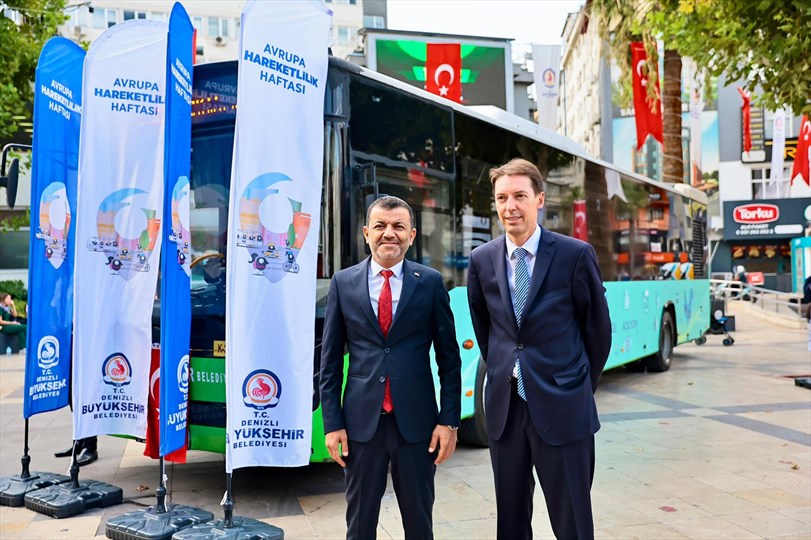 Basın açıklamasının ardından Denizli Büyükşehir Belediye Başkanı Bülent Nuri Çavuşoğlu ve Avrupa Birliği Türkiye Delegasyonu Başkan Vekili Jurgis Vilcinskas, Avrupa Hareketlilik Haftası 2025 kapsamında giydirilen otobüsle hatıra fotoğrafı çekildi.