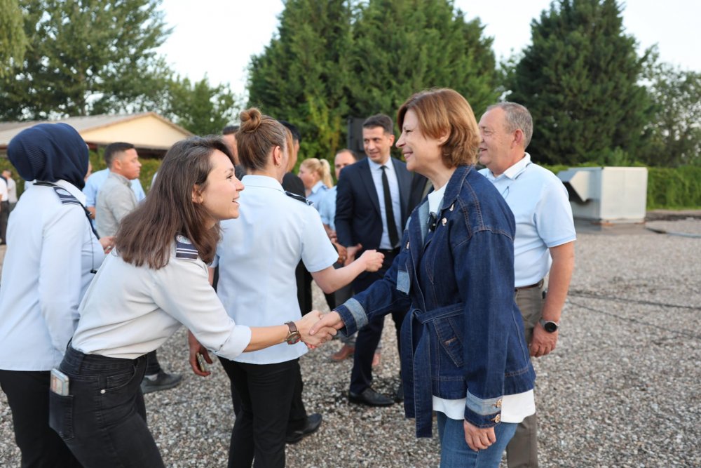 Personel tarafından çiçeklerle karşılanan Başkan Ünlüce, “Sabahın ilk saatlerinde burada olmak ve şehrin her köşesinde yaşayan vatandaşlarımızı alıp sevdiklerine, işlerine, okullarına, hastanelere ulaştırmak gerçekten çok yüce, çok büyük bir görev. Bayram öncesi sizlerle birlikte olmak ve tek tek bayramlarınızı kutlamak istedim. Aynı zamanda sizlere bugüne kadar Eskişehir'e, Eskişehirlilere verdiğiniz hizmetler için ayrıca teşekkür ediyorum. Gece seferleriyle hiç durmayan bir ulaşım ağımız var. Şehrimizin her noktasında, her sokağında, her mahallesinde sizin izleriniz var. İyi ki varsınız. Her zaman yanınızda olduğumuzu bilmenizi isterim. Hepinizin gözlerinden öpüyorum. Çocuklarınıza, eşlerinize ailelerinize selamlarımı iletmenizi istiyorum. Hep birlikte nice bayramlara.” dedi. Konuşma sonrası Başkan Ünlüce personel ile tek tek bayramlaştı. Törenin ardından Ünlüce ile başta kadın otobüs şoförleri olmak üzere personel bol bol hatıra fotoğrafı çektirdi.