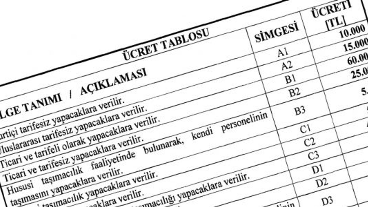 Önceki Karayolu Taşıma Yönetmeliği ekindeki belge ücretleri yeniden değerlendirme oranında artırılarak 1 Ocak 2018’den geçerli olmak üzere yayınlanmış idi. 8 Ocak 2018 itibariyle yayınlanan yeni Yönetmelik ekindeki yeni belge ücretleri eski ücretlere göre yüzde 50’yi aşa indirimler yapılarak yeniden belirlenmiş bulunuyor. Buna göre 2018’de 121 bin 568 TL olan yeni B1 belge ücreti yeni yönetmeliğe göre 60 bin lira olarak uygulanacak. B2 ise 60 bin 780 TL’den 25 bin TL’ye indi. D1 ücreti ise 72 bin 942 TL’den 30 bin TL’ye, D2 ise 36 bin 468 TL’den 15 bin TL’ye indi. D4 belgesi de 9 bin 389 TL’den 4000 TL’ye F1 Acentelik belgesi de 9 bin 719 TL’den 4000 bin TL’ye düştü. K1 yetki belgesi de 24 bin 307 TL’den 10 bin TL’ye Yurtiçi Taşıma İşleri Organizatörlüğü R1 belgesi de 364 bin 736 TL’den, 150 bin TL’ye, Uluslar arası ve Yurtiçi Taşıma İşleri Organizatörlüğü R2 belgesi de 486 bin 318 TL’den 200 bin TL’ye düştü.Kendi iştigali ile uluslar arası ve Yurtiçi Eşya Taşımacılığı belgesi C1 12 bin 152 TL’den 5 bin TL’ye, C2 ise 97 bin 256 TL’den 40 bin TL’ye düştü.