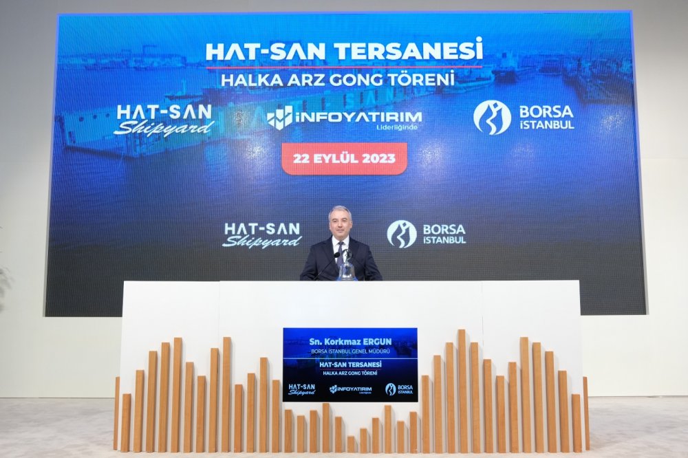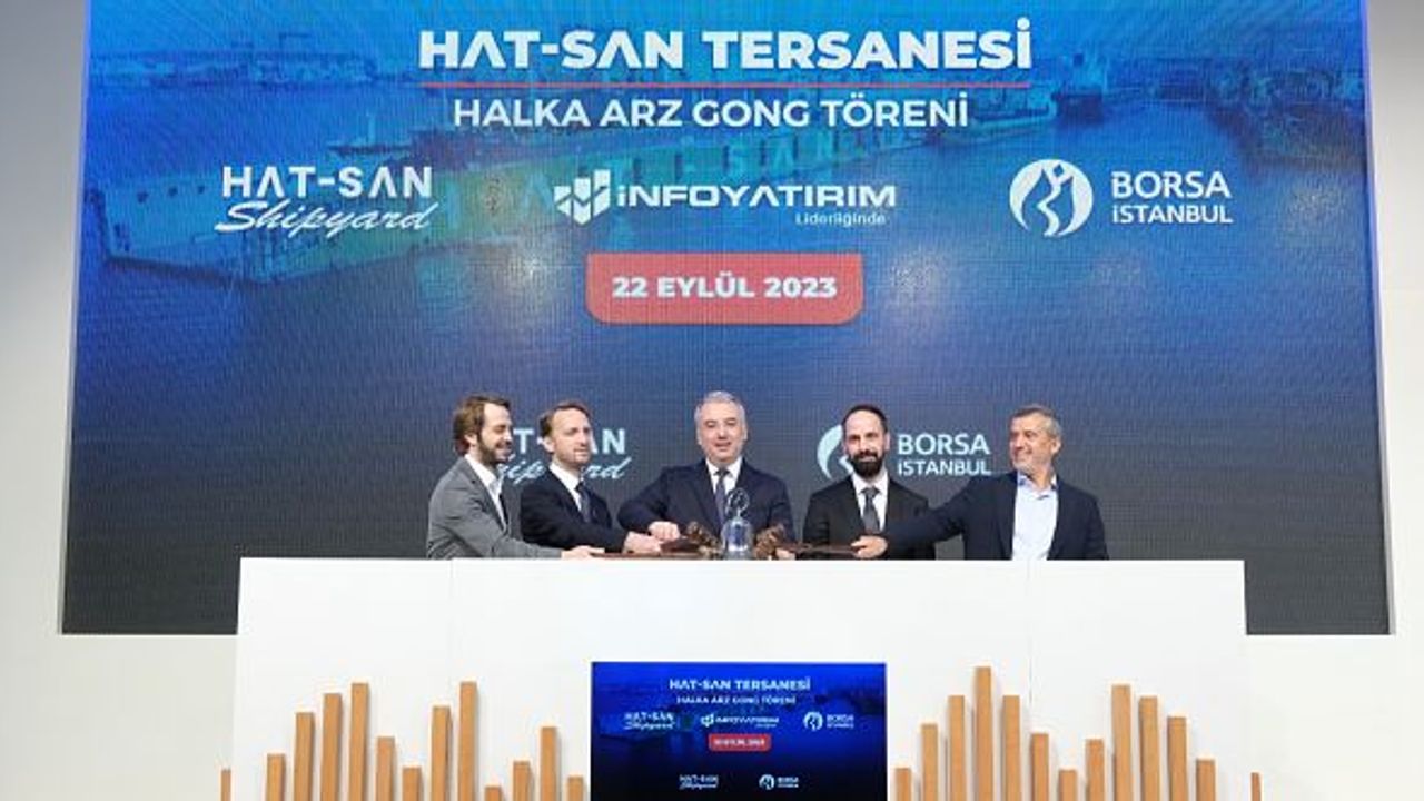 Borsa İstanbul’da gong, Avrupa’nın önde gelen yüzer havuz üreticisi, gemi inşa, dönüşüm ve onarımında 30’dan fazla ülkeye hizmet veren, sektörünün önde gelen ihracatçısı Hat-San Tersanesi için çaldı. Halka arz sürecini yatırımcıların yoğun ilgisiyle tamamlayan şirket, 22 Eylül 2023 tarihi itibarıyla Borsa İstanbul Yıldız Pazar’da, "HATSN" koduyla işlem görmeye başladı.