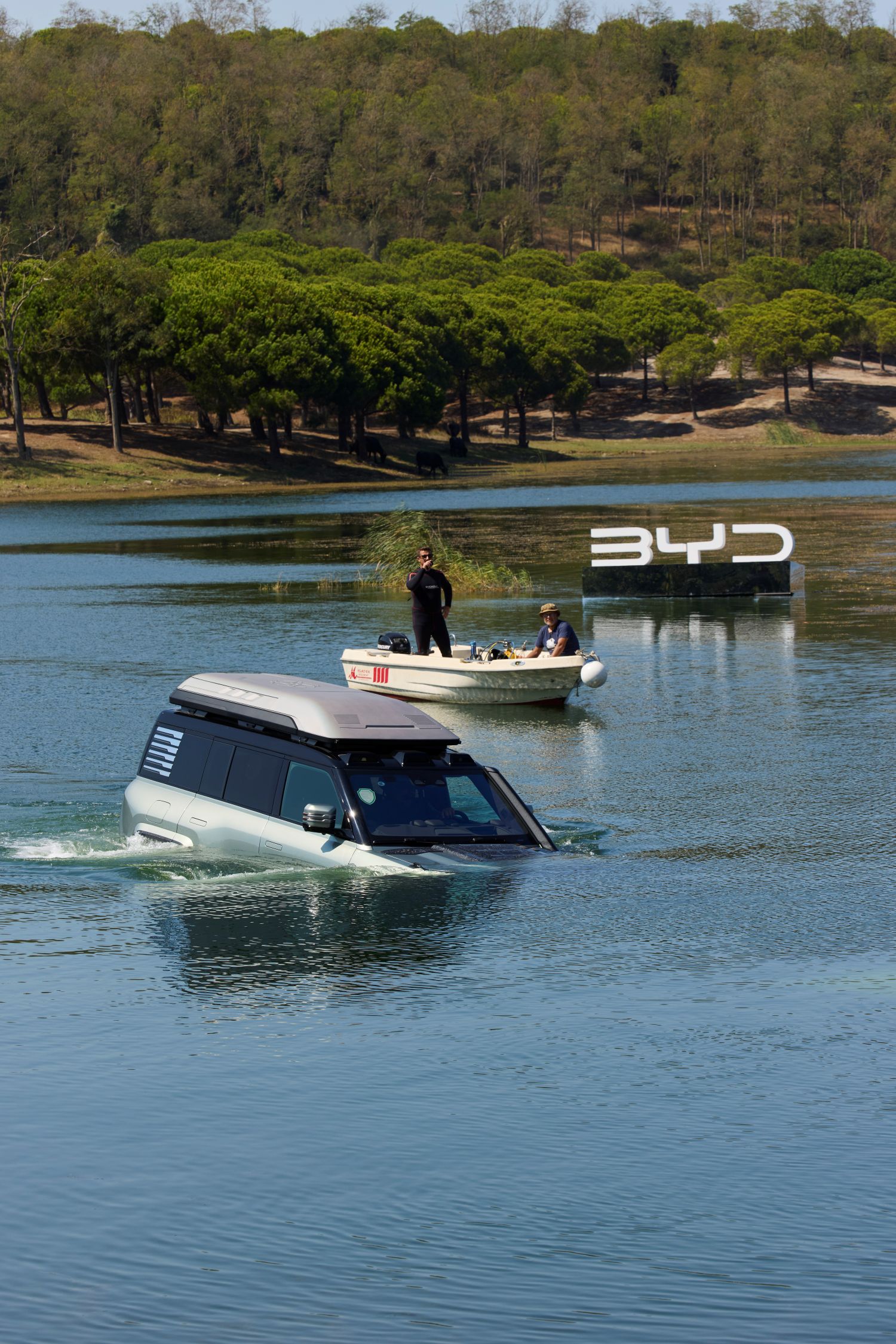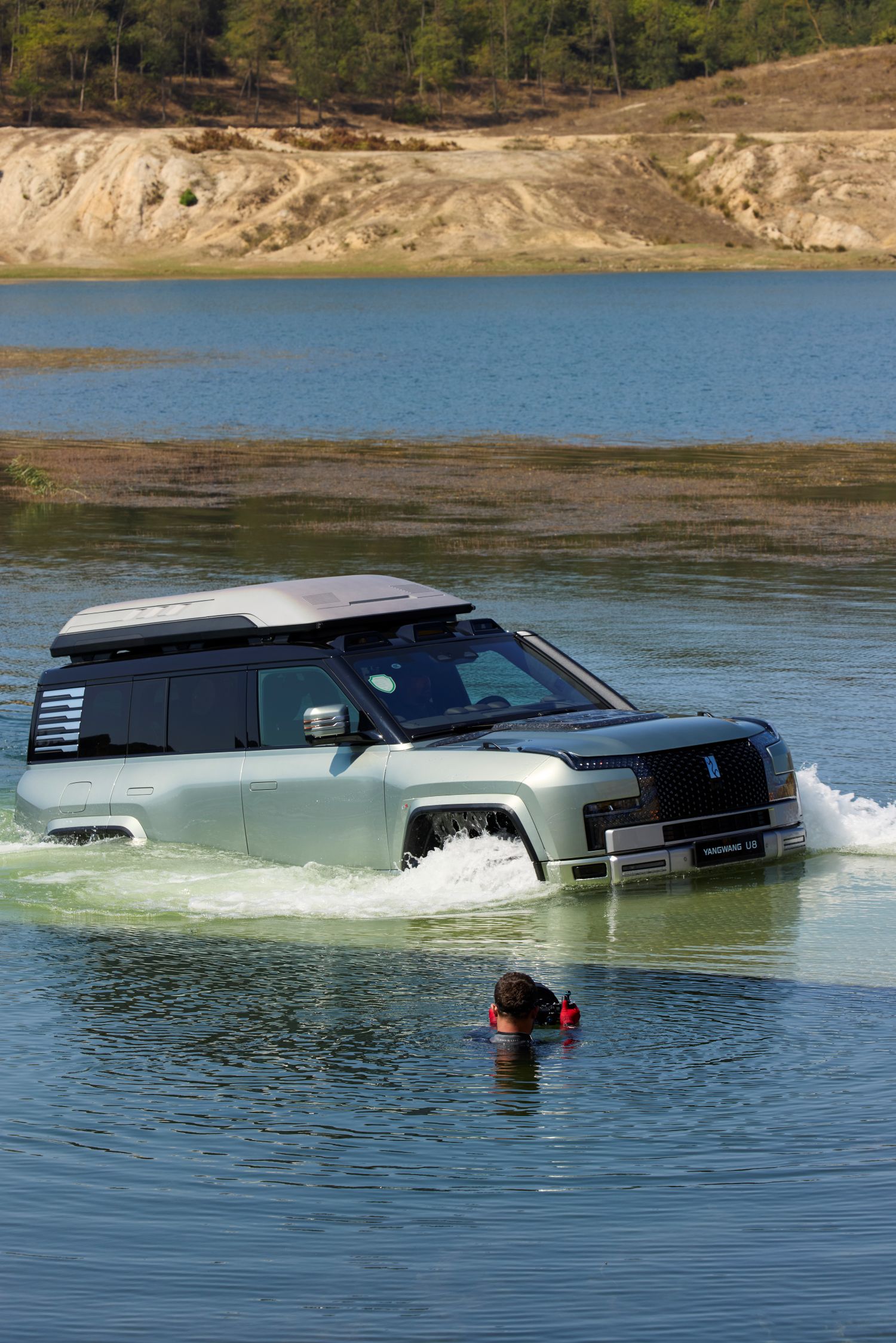 Etkinlikte YANGWANG U8’in off-road versiyonu da benzersiz özelliklerini gözler önüne serdi. Karadan hareket ederek bölgedeki göle giren ve bir süre su üzerinde ilerledikten sonra platforma geri dönen YANGWANG U8, 360 derece Tank Dönüşü yeteneği ve entegre drone teknolojisiyle katılımcılardan tam not aldı.