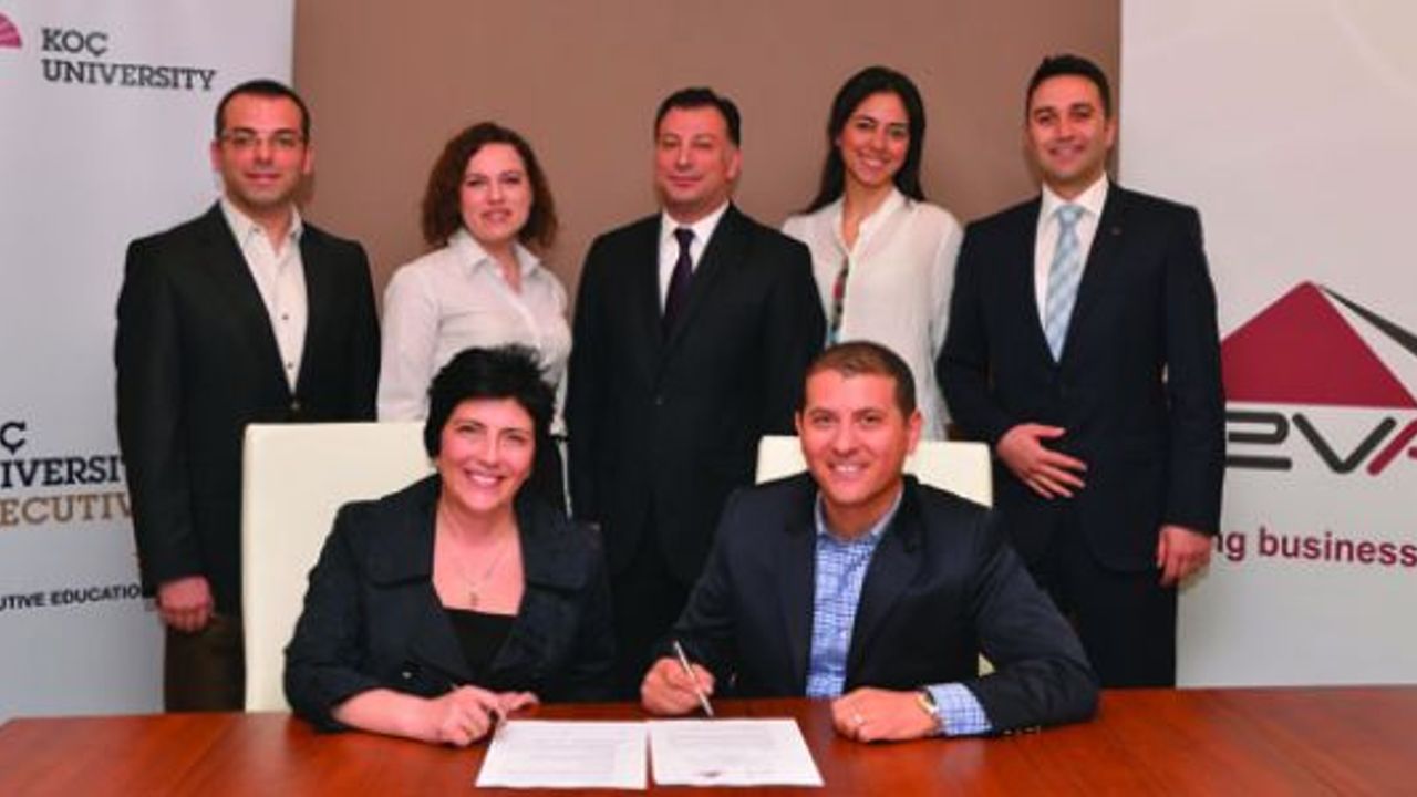 Koç Üniversitesi Yö̈netici Gelistirme Programları Müdürü Orpen İstanbullu, CEVA Insan Kaynakları ve Kurumsal İ̇letisim Direktorü Nihat Çukurkaya işbirliği protokolünü imzaladı.■
