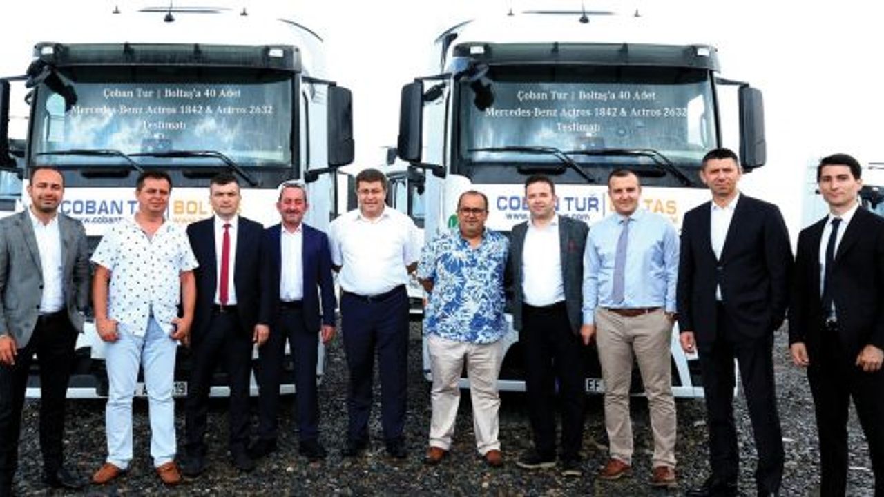 Mercedes-Benz Türk, Mercedes-Benz Finansal Hizmetler, Hases Otomotiv ve Çoban Tur|Boltaş yöneticilerinin katıldığı törende Çoban Tur|Boltaş’a 35 adet Mercedes-Benz Actros 1842 LSnRL ve 5 adet Actros 2632 LD araç teslim edildi. Çoban Tur|Boltaş Yönetim Kurulu Başkanı Necmi Çobanoğlu 40 adet yeni Mercedes-Benz marka aracın anahtarını teslim alırken, “Mercedes-Benz markasını tercih etme sebeplerimiz arasında Çoban Tur|Boltaş olarak ilke edindiğimiz kalite politikasını esas aldık. Uluslararası nakliyat alanında kullanacağımız yeni Mercedes-Benz marka araçlarımızın sahip olduğu kaliteye ek olarak; sunduğu dayanıklılık ve güç, yüksek yakıt tasarrufu, uzun bakım aralıkları, çevreci teknolojileri, yaygın servis ağı ve sağladığı finansman imkânları seçimimizi oldukça kolaylaştırdı. İş birliğimizin devamını diler; bu satışın gerçekleşmesinde emeği geçen tüm Mercedes-Benz Türk, Mercedes-Benz Finansal Hizmetler ve Hases Otomotiv yetkililerine teşekkürlerimi sunarım.” şeklinde konuştu.