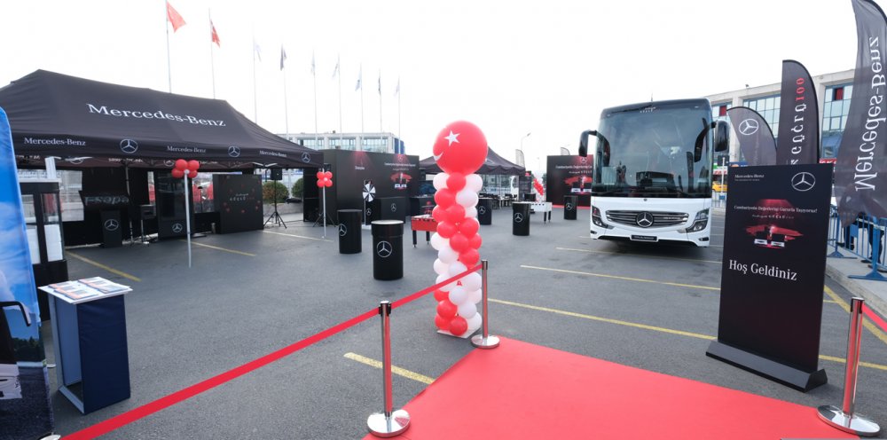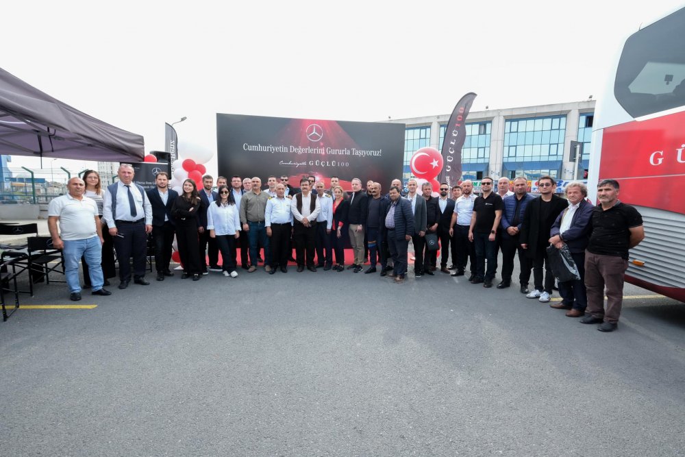 Mercedes-Benz Türk, her sene geleneksel olarak otobüs kaptanlarıyla bir araya geldiği etkinliğini, bu sene “Cumhuriyetin Değerlerini Gururla Taşıyoruz!” sloganıyla beraber, Cumhuriyet’in 100’üncü yılı teması ve coşkusuyla hayata geçirdi. Büyük İstanbul Otogarı’nda düzenlenen etkinlikte, otobüs kaptanları hem ‘Sürücü Bilgilendirme Eğitimleri’ne katıldılar hem de gün boyu süren aktivite ve oyunlarla keyifli bir gün geçirdiler. ‘Cumhuriyetle Güçlü100’ tasarımıyla giydirilen Mercedes-Benz Travego otobüs de etkinlik alanında, kaptanların yoğun ilgisiyle karşılaştı.