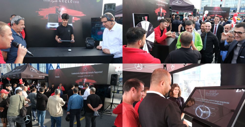 Etkinlik kapsamında, daha güvenli ve ekonomik bir sürüş deneyimi sağlamak üzere ‘Mercedes-Benz Türk Eğitim Grubu’ tarafından tasarlanan ve bugüne kadar binlerce kaptanın faydalandığı ‘Sürücü Bilgilendirme Eğitimleri’ iki seans halinde gerçekleştirildi. Kaptanlar, yapay zekâ arayüzü sayesinde Atatürk ile aynı karede yer alma şansını elde ederken, karikatüristler tarafından çizilen portrelerini de günün hatırası olarak aldılar. Cumhuriyet Bandosu ve pasta kesimiyle Cumhuriyet coşkusunun taçlandırıldığı etkinlik, otobüs kaptanları için unutulmaz bir anı oldu.