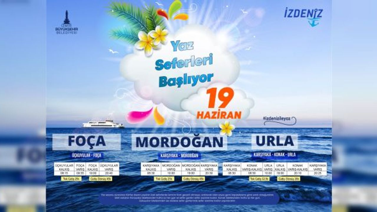 İzmir Büyükşehir Belediyesi İZDENİZ Genel Müdürlüğü; Foça, Mordoğan ve Urla’ya hafta sonu yaz seferlerini 19 Haziran Cumartesi gününden itibaren başlatıyor. Karşıyaka-Konak-Urla; Üçkuyular-Foça ve Karşıyaka-Mordoğan güzergâhlarındaki seferler, pandemiyle mücadele kapsamındaki kısıtlamaların devam etmesi nedeniyle öncelikle yalnızca cumartesi günleri yapılacak. Kısıtlamalar sona erdiğinde pazar günleri de seferler olacak.