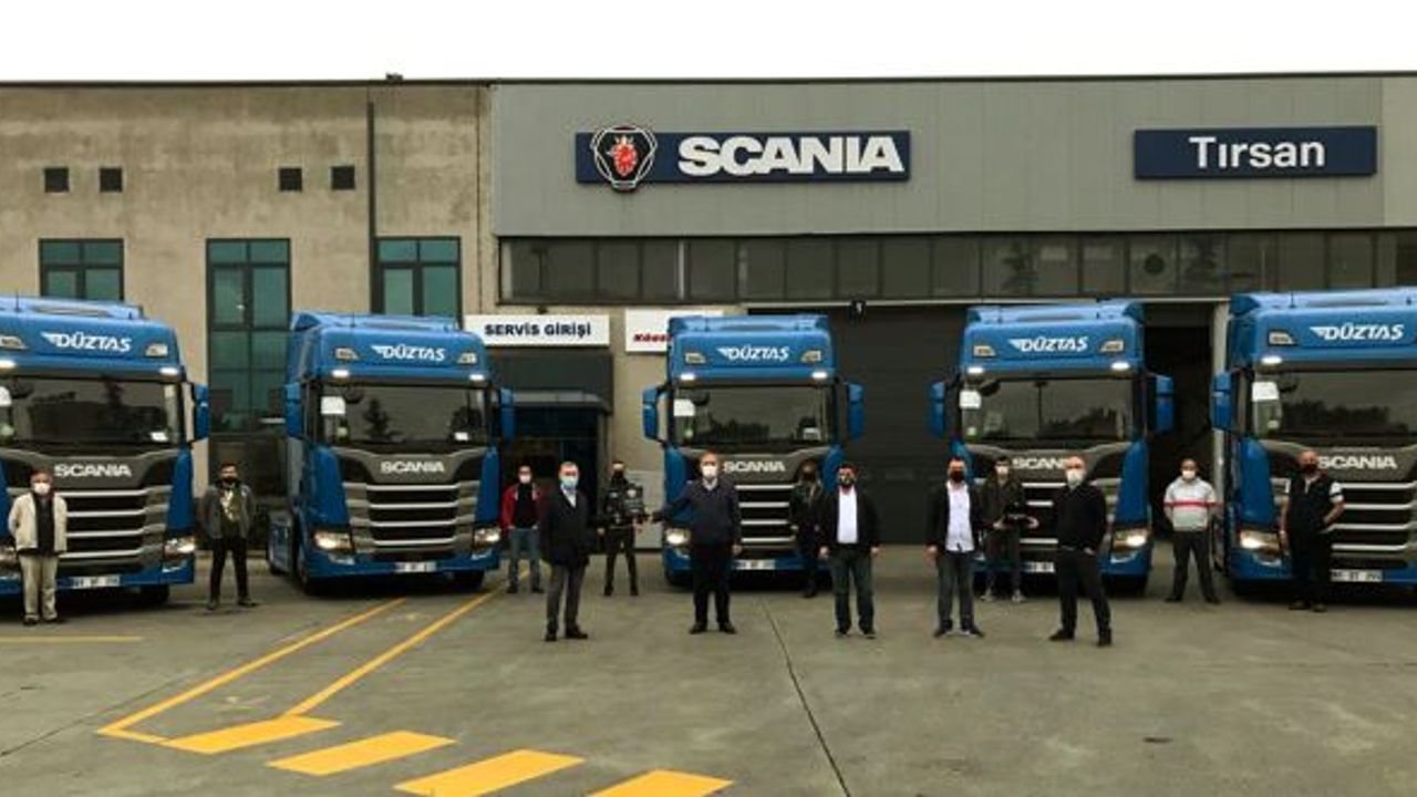 1995 yılında kurulan ve kısa zamanda Düzce bölgesinin en büyük nakliye firması haline gelen Düztaş Lojistik filosuna kattığı özel üretim 5 adet R450 A4x2LA araçlarını Doğuş Otomotiv Yetkili Satıcısı Tırsan’ın Sancaktepe tesislerinde teslim aldı. Firmaya yeni araçları Scania Bölge Satış Yöneticisi Volkan Kahya, Tırsan Otomotiv yetkilisi Recep Öndal Demirci tarafından Düztaş Lojistik Yönetim Kurulu Başkanı İsmail Civelek ve Düztaş Lojistik Genel Müdürü Sefa Civelek’e teslim edildi.
