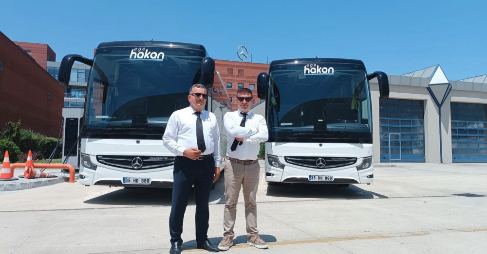 2 Tourismo’nun teslimatı, 8 Temmuz 2024 Pazartesi günü, Mercedes-Benz Türk Pazarlama Merkezi’nde Ege Hakan Turizm kaptanları Mustafa Usta ve Halil Atıcı’ya gerçekleştirildi.