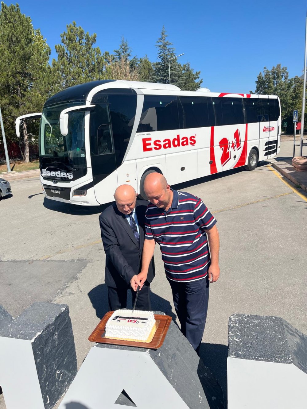 MAN Kamyon ve Otobüs Ticaret A.Ş’nin Akyurt tesislerinde gerçekleşen teslimat töreninde aracı MAN Bölge Satış Yöneticisi Ufuk Demirer, Esadaş Turizm Yönetim Kurulu Üyesi Haluk Şenpolat’a teslim etti.