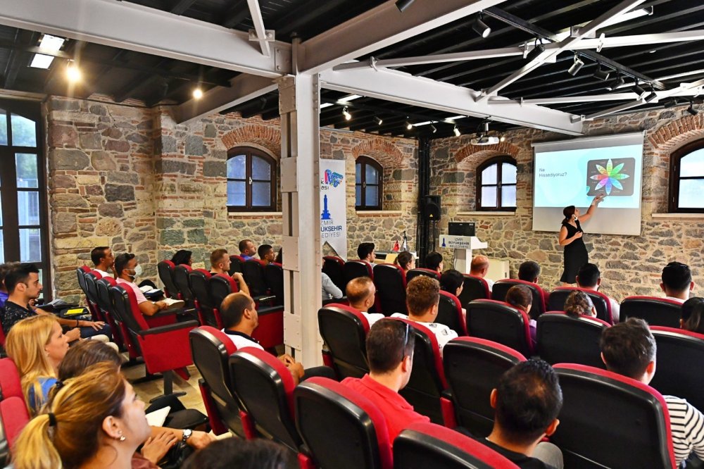 Projenin teorik eğitim aşaması hakkında ise İzmir Büyükşehir Belediyesi Sosyal Projeler Dairesi Başkanı Anıl Kaçar bilgi verdi. Kaçar, “İlk etapta 150 kişilik bir gruba, toplumsal cinsiyet eşitliği, engelli farkındalığı, çocuk hakları, işaret dili, ayrımcılıkla mücadele, iletişim becerileri, stresle başa çıkabilme ve öfke kontrolü gibi temel konuları içeren ve toplam 60 saati bulan eğitimler verildi. Burada şoförlük becerilerinin yanında iletişimi güçlü, kriz anlarında sakin kalabilen, bilgili ve becerikli personeli istihdam etmeyi amaçlıyoruz. Böylece, karşılıklı saygı, sağduyu ve anlayış kültürünün hakim olduğu nitelikli hizmeti verebilmeyi ve toplumsal dönüşüme de katkı sağlamayı arzu ediyoruz” diye konuştu.