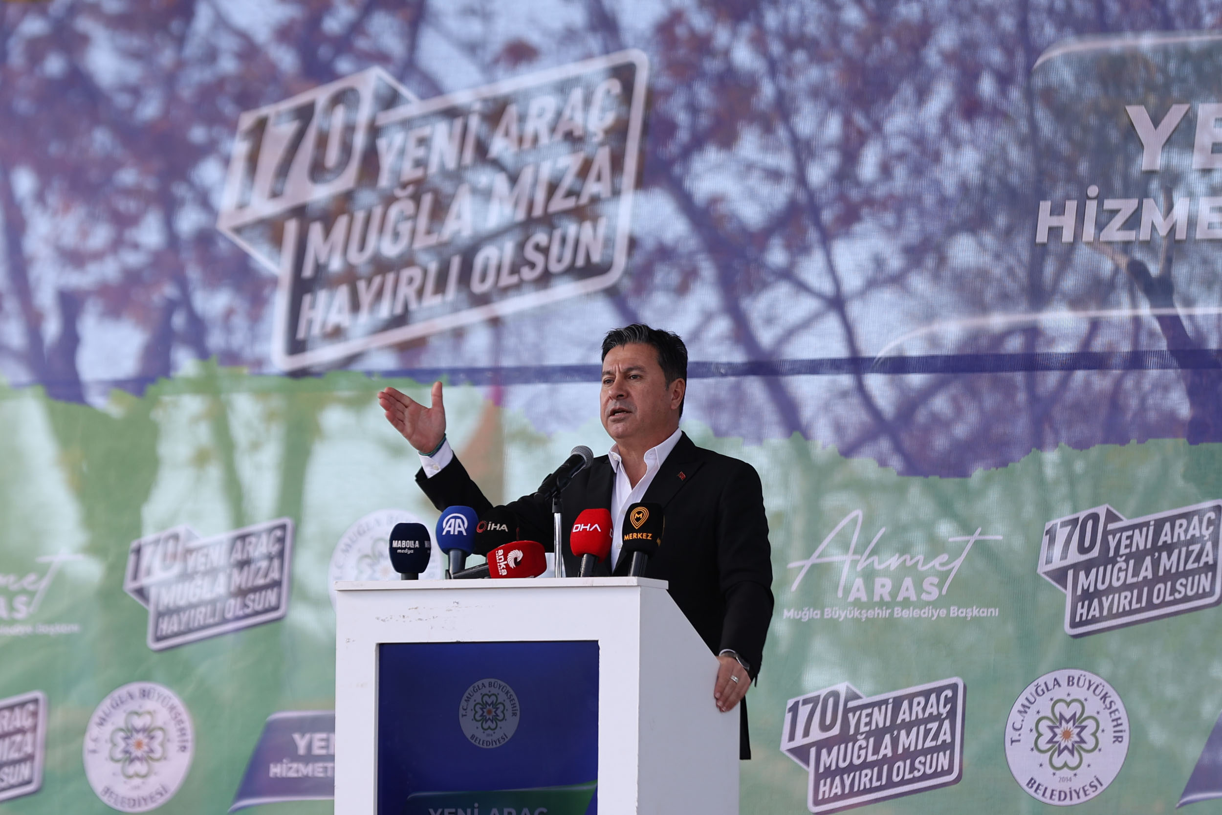 170 yeni araç için düzenlenen törene, Kıyı Ege Belediyeler Birliği ve Muğla Büyükşehir Belediye Başkanı Ahmet Aras, ilçe belediye başkanları, CHP İl, ilçe ve kadın kolları başkanları, STK’lar, muhtarlar ve vatandaşlar katıldı.