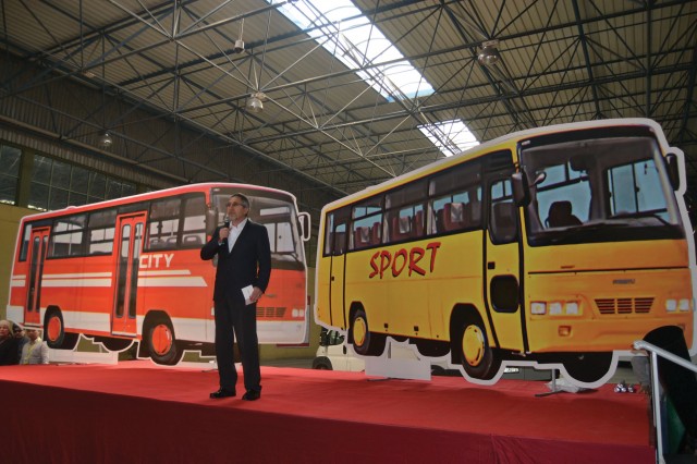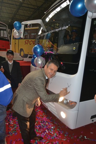 Genel Müdür Dinçer Çelik, ilk üretilen otobüs maketlerinin önünde tören konuşmasını yaptı.