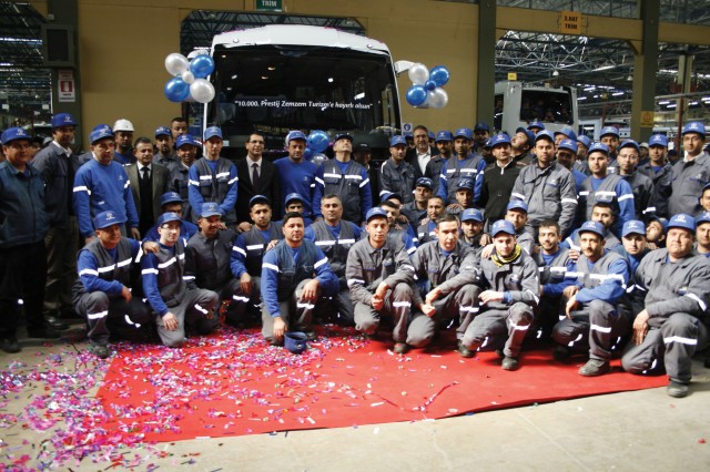 Temsa Adana Fabrikası çalışanları, ürettikleri 10 bininci Prestiji gururla imzaladılar.