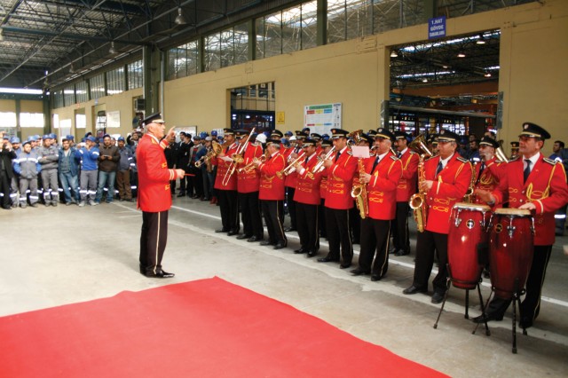 Temsa Adana Fabrikasında 10 bininci midibüsün banttan iniş törenine Adana Belediyesi Bando Takımı renk kattı.