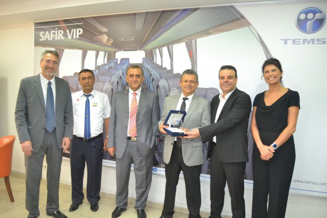 Temsa Pazarlama ve Satış Direktörü Murat Anıl, Safir araçlarının motor tedarikçisi DAF adına da kaptan Mehmet Çalıkuşu’ya plaket ve DAF’ın hediyelerini sundu.