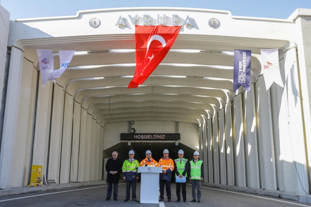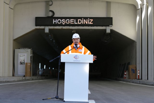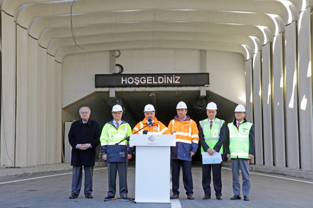 Ulaştırma Denizcilik ve Haberleşme Bakanı Ahmet Arslan, 20 Aralık’taki açılışa sayılı günler kala Avrasya Tüneli şantiyesini ziyaret etti. Arslan’ı, Yapı Merkezi Holding Yönetim Kurulu Başkanı Ersin Arıoğlu ve ATAŞ CEO’su Seok Jae Seo ve ATAŞ Genel Müdür Yardımcısı Mustafa Tanrıverdi karşılayarak, 7 gün 24 saat aralıksız süren çalışmalar hakkında bilgi verdi. Arıoğlu, projede görev alan tüm mühendis ve işçilerin Türkiye’ye çok değerli bir eser kazandırmak için büyük bir heyecan ve kıvançla çalıştığını söyledi.