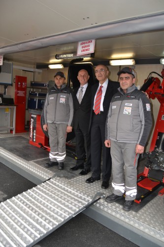 Brisa Ticari Ürünler Pazarlama Direktörü Zeki Bilsel, Mobilfix projesinin mimarı Cüneyt Elibol, teknik elemanlarla birlikte.