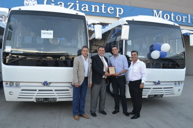 Altın Turizm firma sahibi Coşkun Altın ve Mali İşler Müdürü Sedat Ersoy’a araçları Temsa Pazarlama ve Satış Direktörü Murat Anıl, Bölge Satış Yöneticisi İrfan Özsevim ve Ant Oto Yönetim Kurulu Üyesi Hikmet Göksoy ve Ant Oto İzmir ekibinden Şakir Yılmaz yaptı.