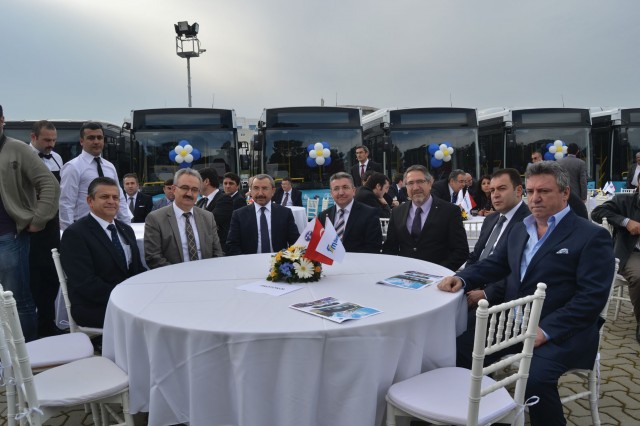 FSM Demirbaş Otomotiv Yönetim Kurulu Başkanı Mustafa Demirbaş, Sancaktepe Belediye Başkanı İsmail Erdem, İstanbul Otobüs A.Ş Genel Müdürü Abdullah Yasir Şahin, Temsa Global Genel Müdürü Dinçer Çelik, Pazarlama ve Satış Direktörü Murat Anıl ve misafirleriyle...