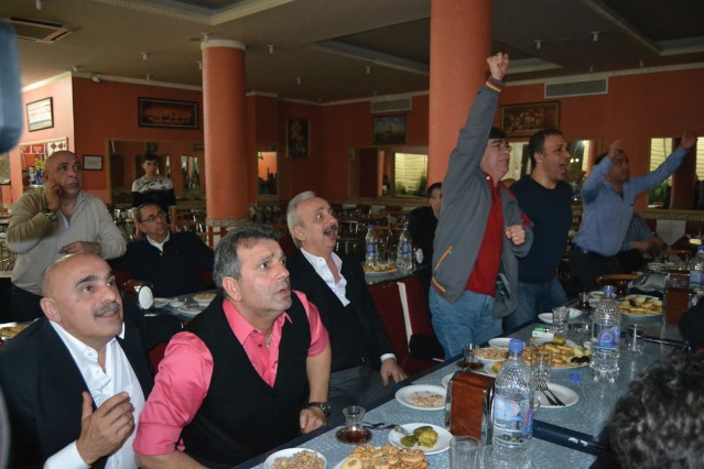 Zafer gecesinde büyük sevinç yaşayan Türkiye Futbol Federasyonu eski Başkanı ve Ulusoy Holding Yönetim Kurulu Başkanı Haluk Ulusoy’a Doğan Haber Ajansı Dış Haberler Editörü Galip Eraydın ve Taşıma Dünyası Yayın Yönetmeni Erkan Yılmaz da eşlik etti.
