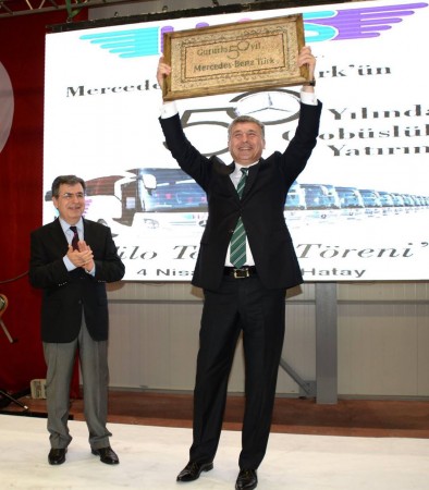 Törende ayrıca Mercedes-Benz Türk A.Ş. Direktörler Kurulu Başkanı Süer Sülün tarafından Sevim ve Ayhan Kara’ya birer plaket verildi.