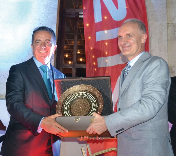 Anadolu Isuzu Satış ve Pazarlama Direktörü Fatih Tamay, İTO Meclis Başkanı Şekip Avdagiç’e bir plaket sundu.