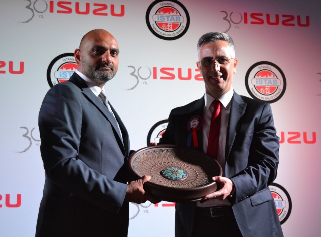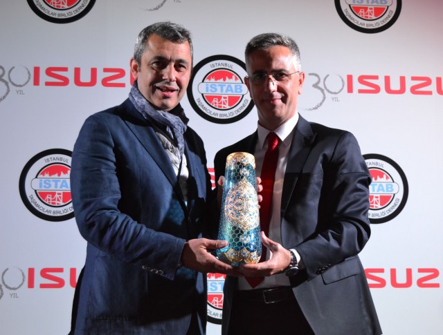 Ali Bayraktaroğlu, Anadolu Isuzu Satış Direktörü Tunç Karabulut’a ise işlemeli tabak takdim etti.