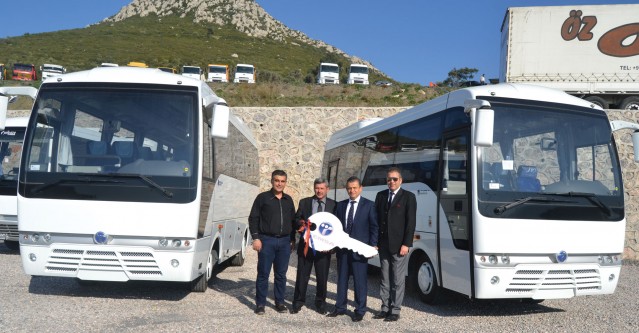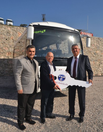 Yelpaze Turizm firma sahibi Hasan Yıldırım’a araçları Temsa Pazarlama ve Satış Direktörü Murat Anıl, Bölge Satış Yöneticisi İrfan Özsevim, Ant Oto İzmir Bölge Otobüs Satış Sorumlusu Mehmet Kırkağaç teslim etti.