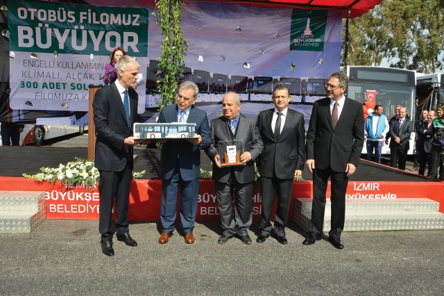 İzmir Büyükşehir Belediyesi ESHOT Genel Müdürlüğü'nün satın aldığı 300 solo Avenue'nin 70 adetlik partisi düzenlenen törenle teslim edildi. Törende, Sabancı Holding Sanayi Grup Başkanı Mehmet Pekarun, Başkan Aziz Kocaoğlu’na bir otobüs maketi sundu.
