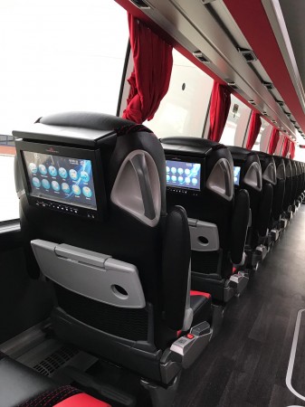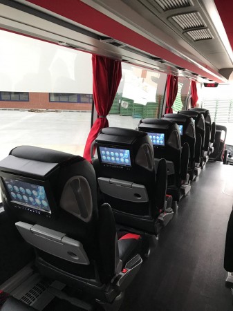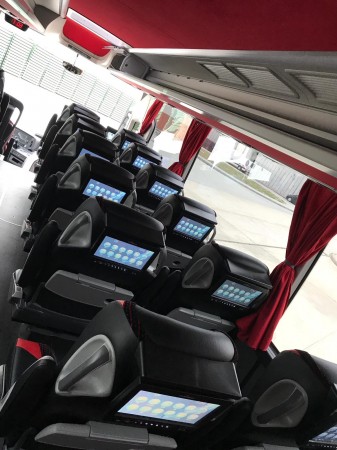Milli Takım Otobüsünün koltuk arkası ekranları Diamond markalı.