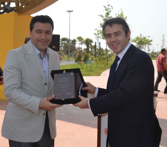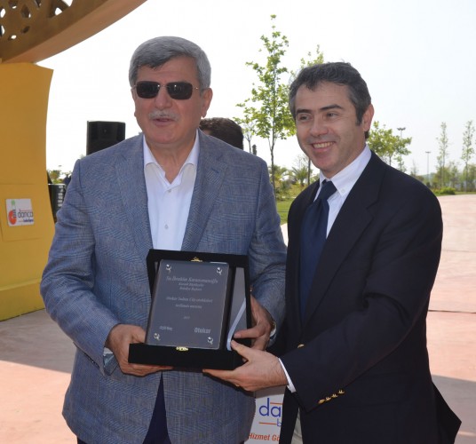 İzmit Büyükşehir Belediyesi Kara Ulaşım Şube Müdürü Salih Kumbar'a Basri Akgül bir plaket sundu.