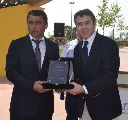 Basri Akgül, günün anısına Başkan Karaosmanoğlu’na bir plaket sundu.