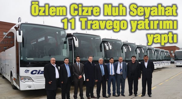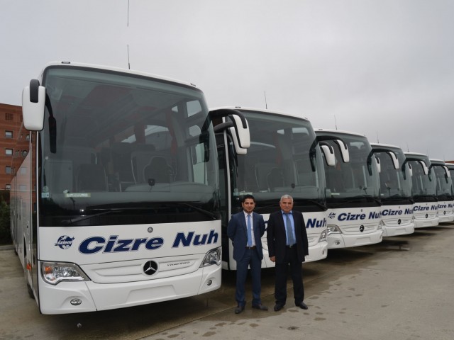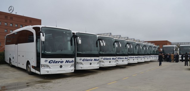 Mercedes-Benz Türk Pazarlama Merkezi’nde 26 Şubat Salı günü düzenlenen törenle Cizre Nuh Seyahat’e 11 Travego RHD teslim edildi. Törene Cizre Nuh Seyahat Yönetim Kurulu Başkanı Abdurrahim Nur, Yönetim Kurulu Üyesi Burak Nur, Şirket Müdürü Serdar Uzun, İstanbul İşletmecisi Kadir Başboğa, Mercedes-Benz Türk Otobüs Satış Kısım Müdürü Burak Batumlu, Finansal Hizmetler Otobüs Finansmanı Satış Koordinatörü Tolga Sezer ve Otobüs Finansmanı Satış Uzmanı Kemal Üşenmez, Koluman Gaziantep Satış Müdürü Erdal Kaş ile firma kaptanları katıldı.