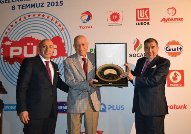 PUİS eski Başkanı Muhsin Alkan’a onur plaketini Shell Türkiye Başkanı Ahmet Erdem verdi.