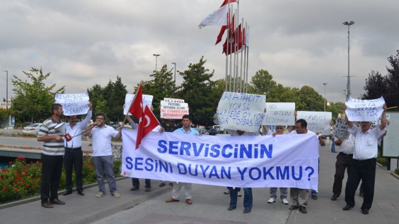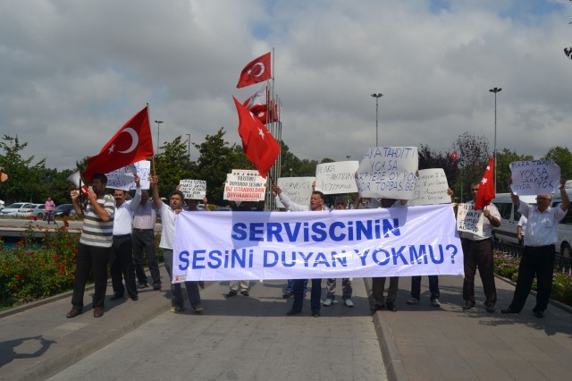 Servisçiler, İstanbul Büyükşehir Belediyesi önünde Plaka Tahdidi eylemi yaptı. 10 Temmuz 2013