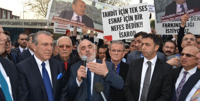 İSAROD Başkanı Hamza Öztürk, İSTAB Başkanı Ahmet Karakış ile yönetim kurulu üyeleri, İTO Meclis Üyesi Hakan Orduhan ve çok sayıda servisçinin katıldığı eylem, basın açıklaması ile başladı.