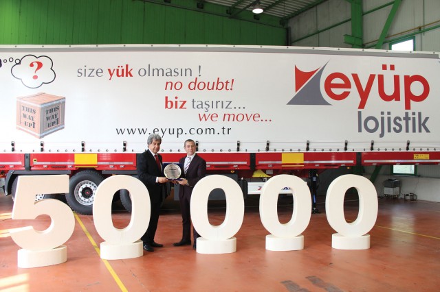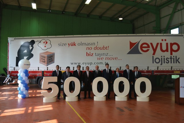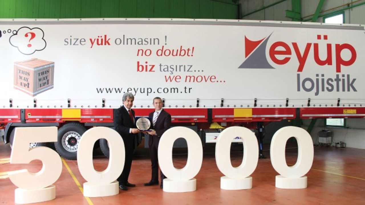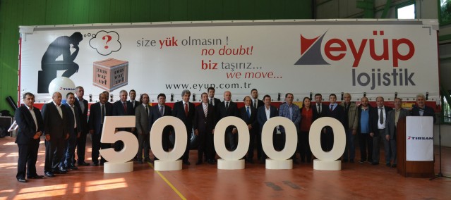 Adapazarı fabrikasında düzenlenen törende 50 bininci araç, Çetin Nuhoğlu tarafından Eyüp Lojistik Yönetim Kurulu Başkanı Eyüp Bartık’a teslim edildi. Törende Tırsan ve DAF bayi yöneticileri de hazır bulundu.