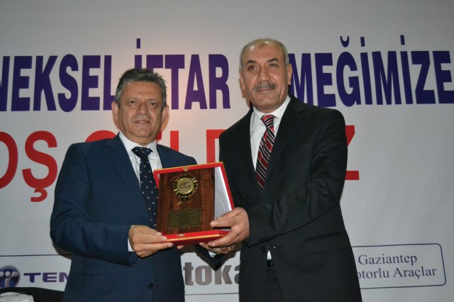 Gaziantep Motorlu Araçlar Sahiplerinden Mehmet Sönmez’e plaketini TOFED Genel Sekreteri Mevlüt İlgin sundu