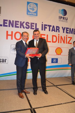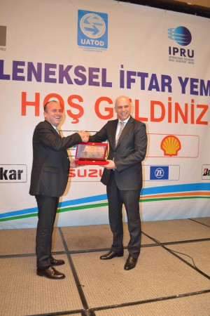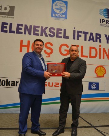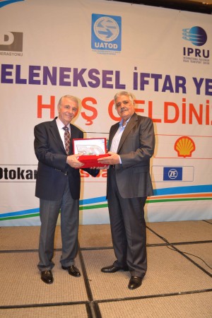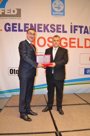 Ulaştırma ve Altyapı Bakanlığı Karayolu Düzenleme Genel Müdürü Mahmut Gürses'e, TOFED Başkanı Birol Özcan ve Genel Sekreter Mevlüt İlgin bir plaket sundu.