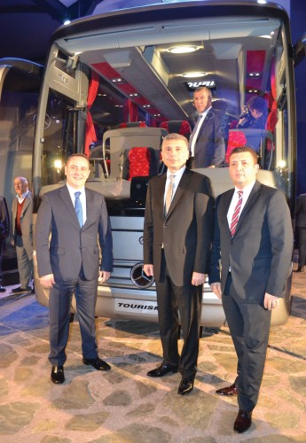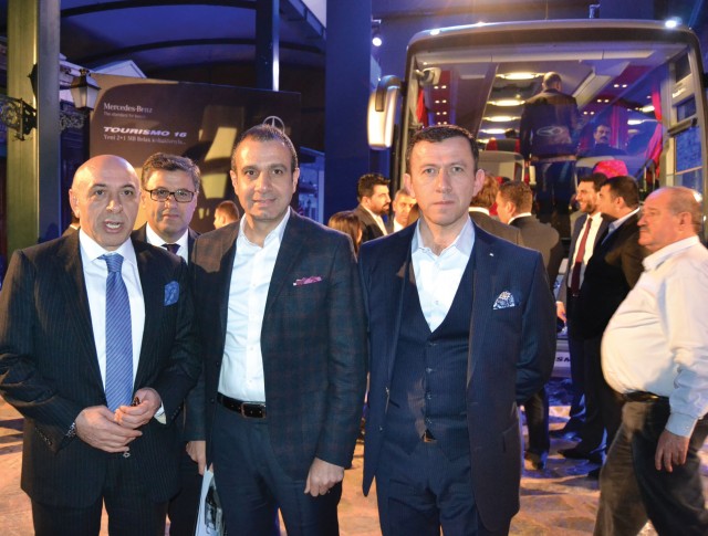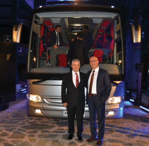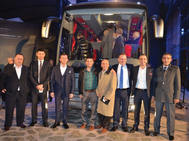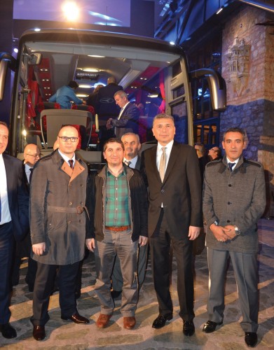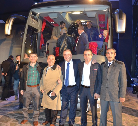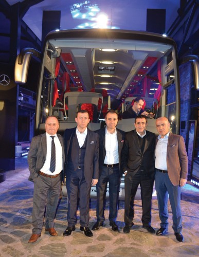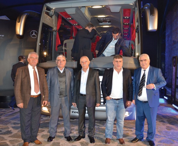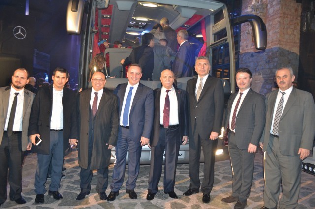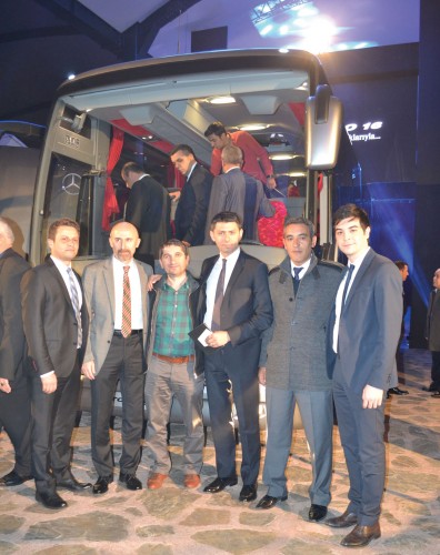 Mercedese-Benz Türk Pazarlama ve Satış Direktörü Süer Sülün, Otobüs Satış Müdürü Burak Batumlu, İstanbul Seyahat YK Başkanı Selami Tırış, Genel Müdür Sırrı İnan ve Mercedes Bayi Yetkilileri birada.