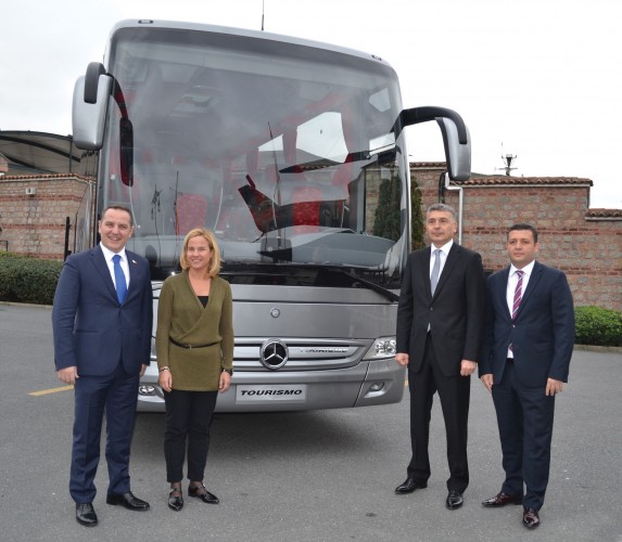 Mercedes-Benz Türk Direktörler Kurulu Başkanı Britta Seeger ve Mercedes-Benz Türk Otobüs ve Kamyon Pazarlama ve Satış Direktörü Süer Sülün, Otobüs Satış Kısım Müdürü Burak Batumlu, Setra Satış müdürü Murat Kızıltan