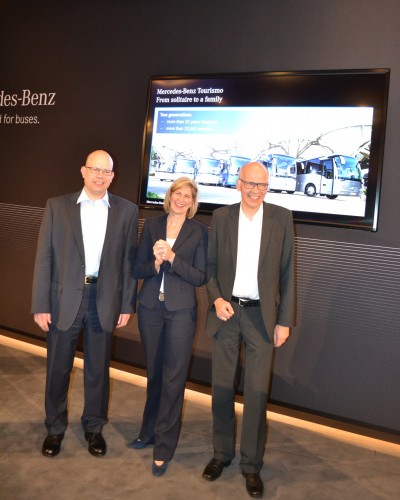 Daimler Otobüs Grubu Pazarlama, Satış ve Satış Sonrası Hizmetler Başkanı Ulrich Bastert, Ürün İletişimi Kamyon ve Otobüs Avrupa Sorumlusu Uta Leitner ve Otobüs Grubu Mercedes-Benz Otobüsleri Eğitim Yöneticisi Frank Mandel açıklamalarda bulundu. Tourismo’nun başarısının temelini açık bir stratejinin oluşturduğuna dikkat çeken Ulrich Bastert, “Tourismo herkese hitap eder. Tüm kullanım alanları ve şirketler için ideal olmakla birlikte ekonomik, konforlu ve güvenlidir. Tourismo; yeni konfor koltuk başlıklarına sahip yolcu koltukları, şehirlerarası otobüsler için özel donanımlar, en yeni WLAN teknolojisine sahip eğlence sistemleri ile güçlü AEBS acil fren asistanına sahip güvenlik teknolojisiyle gelişmiş ve son derece moderndir” dedi.