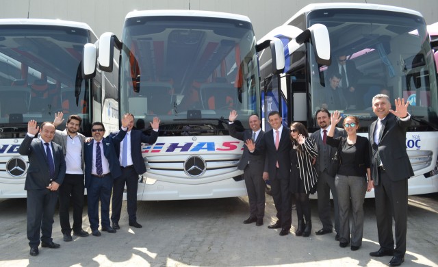 Mercedes-Benz Türk 25 Firma Sahibine Plaket verdi. Firmalar sezona Yeni Travego yatırımlarıyla start verdiler. 25 Firma filosuna kattığı 50 adet Yeni Travego’nun teslim töreninde Mercedes-Benz Türk Yönetimi ve Bayi Yöneticilerinin katılımlarıyla plaketler sunuldu.